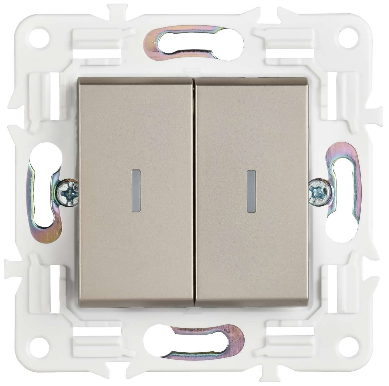 ОформитьSKANDY Выключатель 2-клавишный с индикацией 10А SK-V09Sh шампань IEK