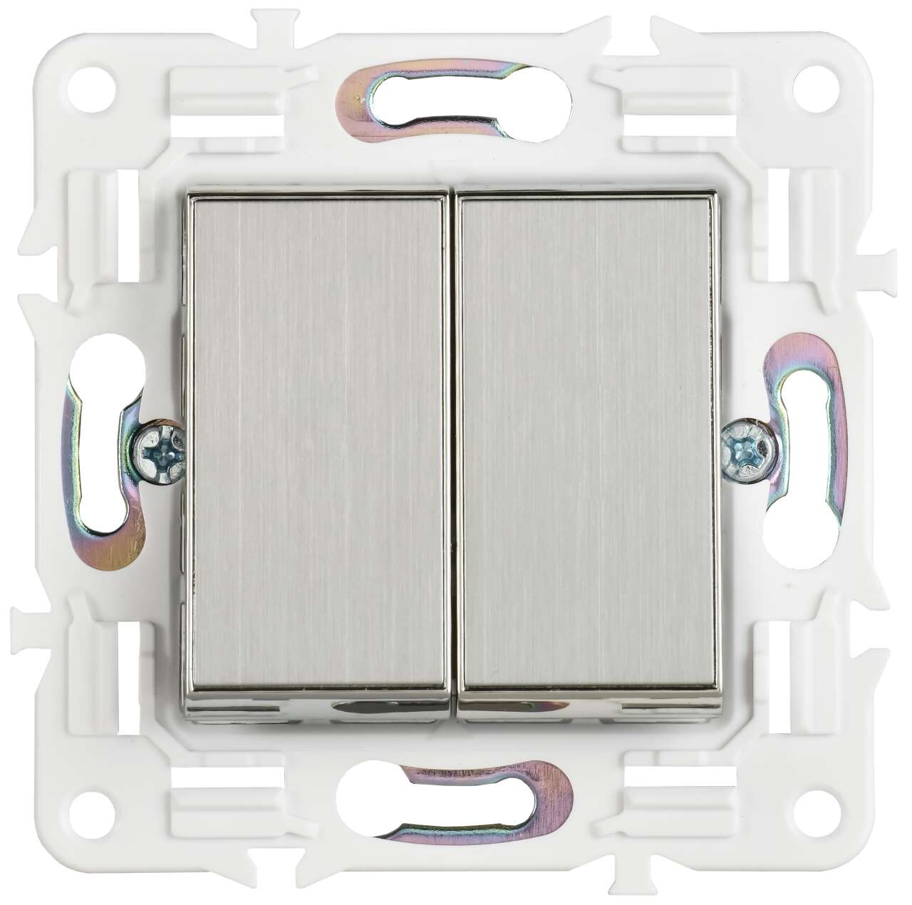 ОформитьSKANDY Выключатель 2-клавишный проходной 10А SK-V05N металл никель IEK