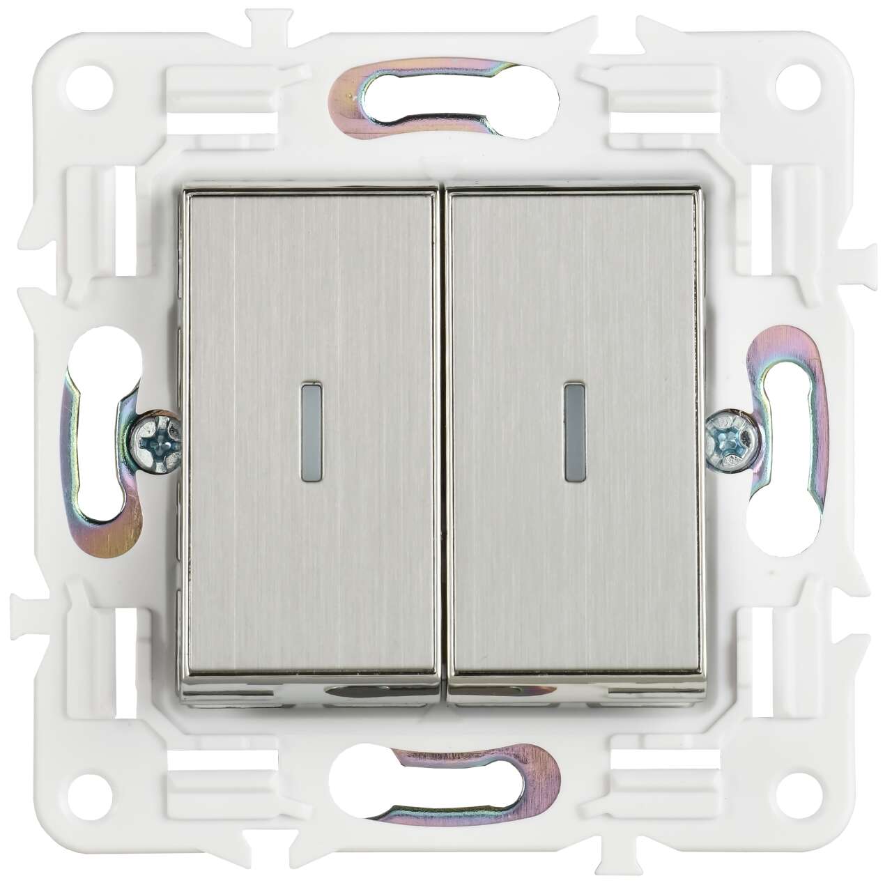 ОформитьSKANDY Выключатель 2-клавишный проходной с индикацией 10А SK-V10N металл никель IEK