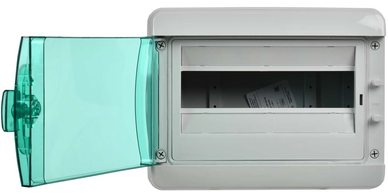 - Крышка корпуса при помощи специальных винтов-шарниров открывается без полного снятия, упрощая обслуживание щита.