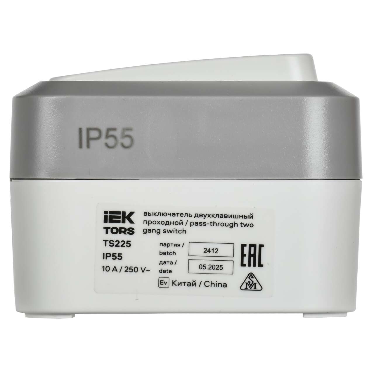 ОформитьTORS Выключатель двухклавишный проходной 10А IP55 TS225 сер-бел IEK