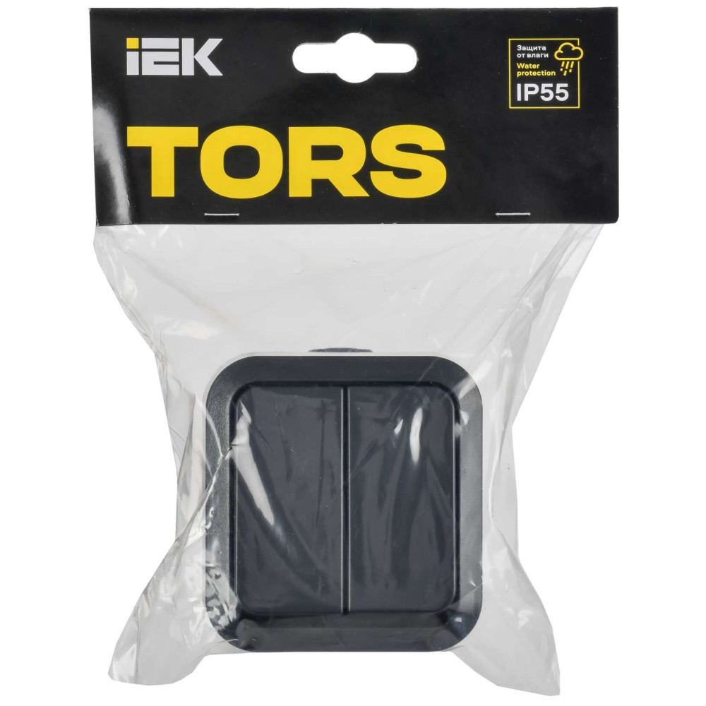 ОформитьTORS Выключатель двухклавишный проходной 10А IP55 TS125 графит IEK