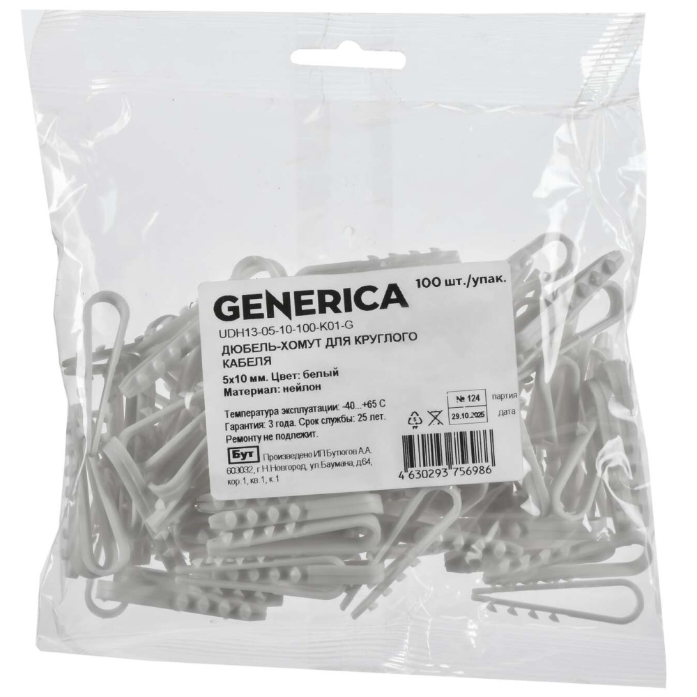 ОформитьДюбель-хомут 10-5мм для плоского кабеля нейлон белый (100шт/упак) GENERICA