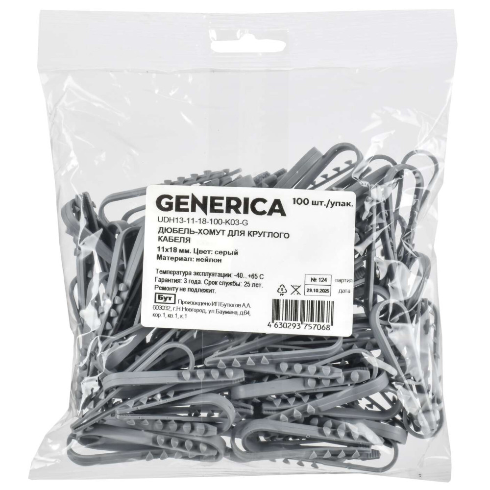 ОформитьДюбель-хомут 11-18мм для круглого кабеля нейлон белый (100шт/упак) GENERICA