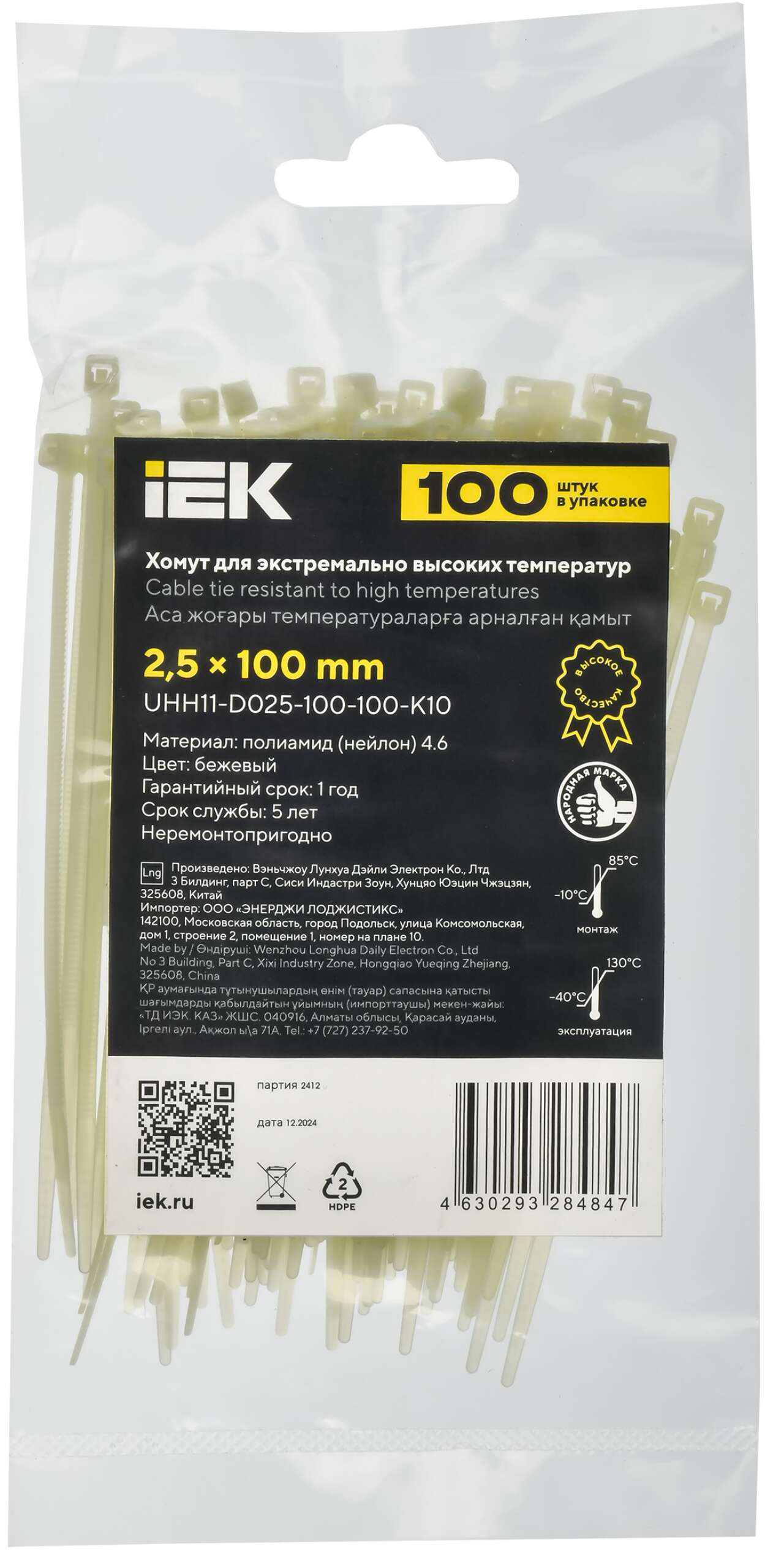 ОформитьХомут P4.6 для экстремально высоких температур бежевый 2,5х100мм IEK
