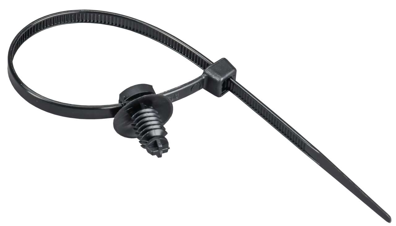 Хомуты с зубчатым креплением в форме "ёлочки", которые надежно фиксируются в монтажных отверстиях. Подходят для крепления проводов к панелям, корпусам и другим поверхностям без дополнительного инструмента. Благодаря виброустойчивой конструкции часто применяются в электронике, автомобилестроении и промышленном оборудовании. Просты в установке и обеспечивают аккуратную организацию кабелей.