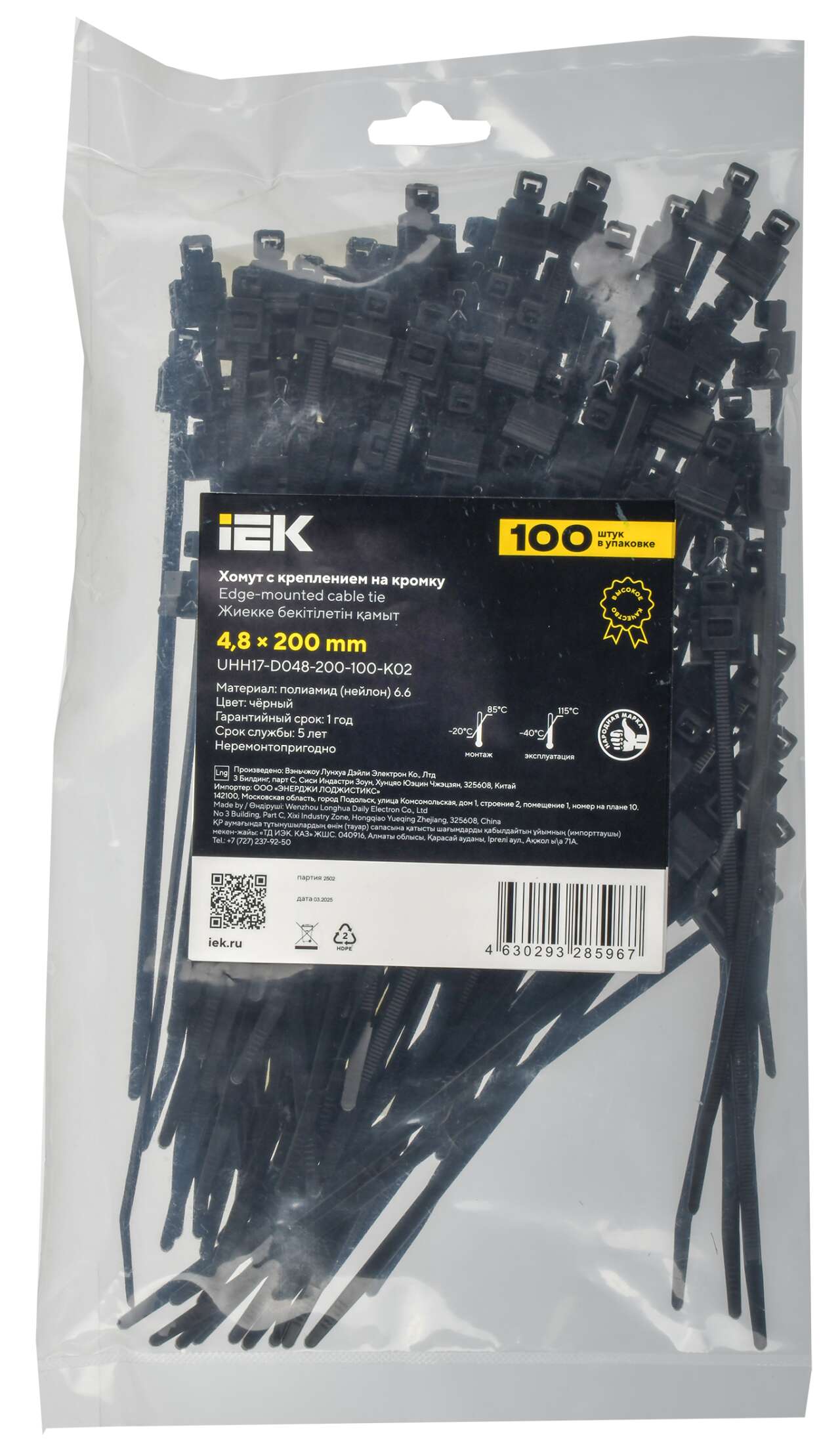 ОформитьХомут P6.6 с креплением на кромку чёрный 4,8х200мм IEK
