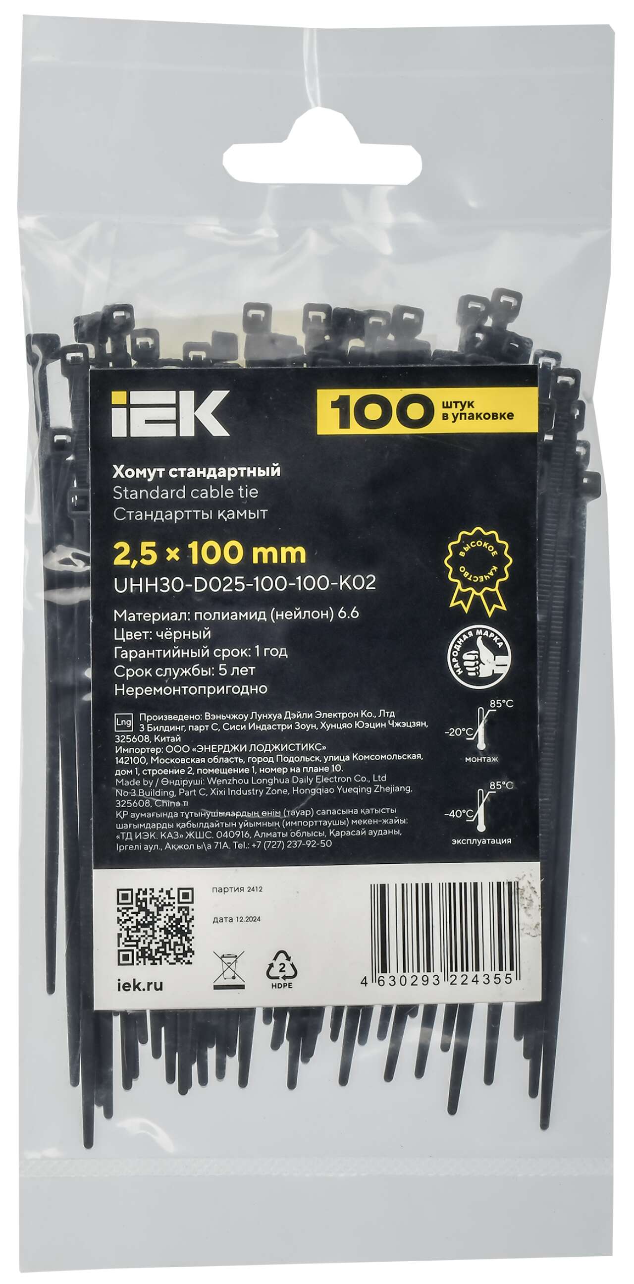 ОформитьХомут P6.6 стандартный чёрный 2,5х100мм IEK