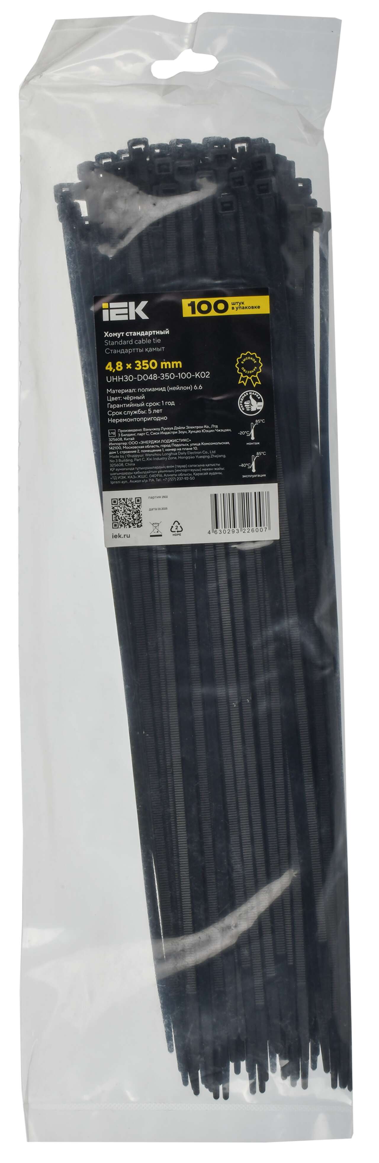 ОформитьХомут P6.6 стандартный чёрный 4,8х350мм IEK