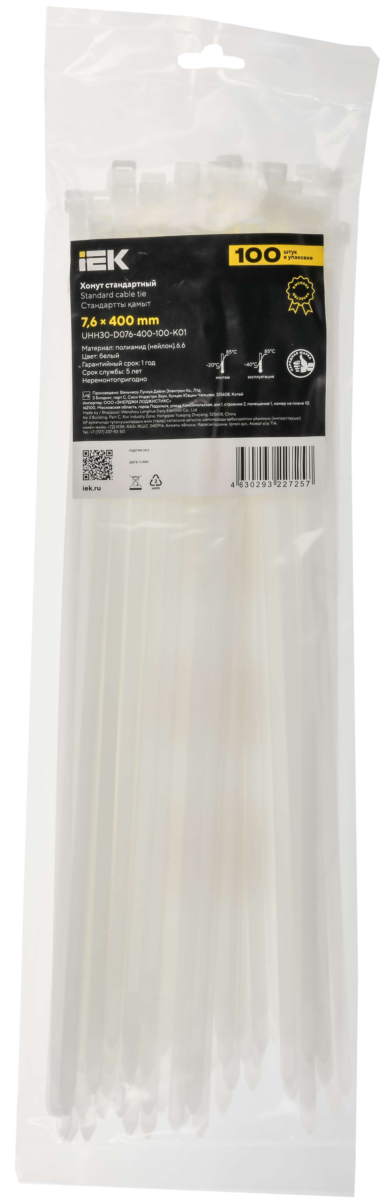 ОформитьХомут P6.6 стандартный белый 7,6х400мм IEK