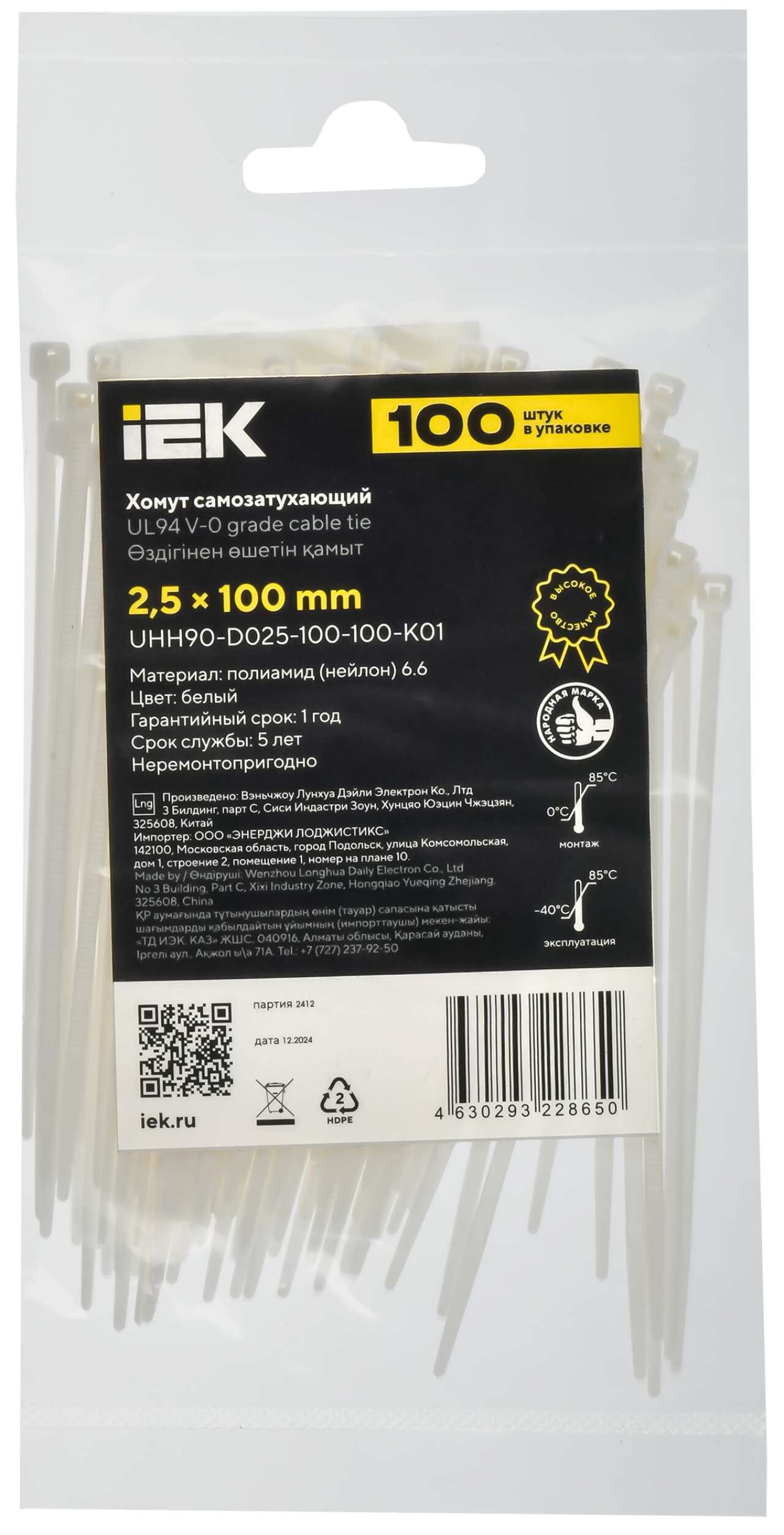 ОформитьХомут P6.6 самозатухающий белый 2,5х100мм IEK