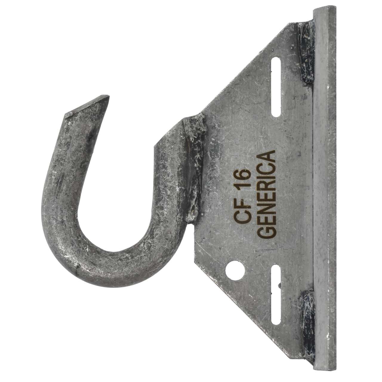 Крюк универсальный CF-16.1 предназначен для крепления анкерных или поддерживающих зажимов на опорах ВЛ. Установка крюка на опору производится при помощи монтажной ленты и скрепы.