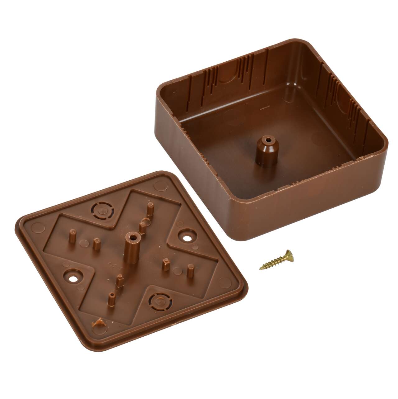 Монтажные коробки для открытого монтажа предназначены для разветвления проводов и кабелей, также для скрытия и дополнительной защиты мест коммутации. Коробки используются как часть системы электрической канализации, состоящей из кабельных каналов. Крепление к стене осуществляется при помощи саморезов. Материал изготовления: полистирол. Материал коробок является безгалогенным («HF» — halogen-free). Цвет: дуб. Степень защиты: IP40. Температура эксплуатации: -25...+40. Количество вводов: 2 - D=10мм. Размер: 75х75х28мм.