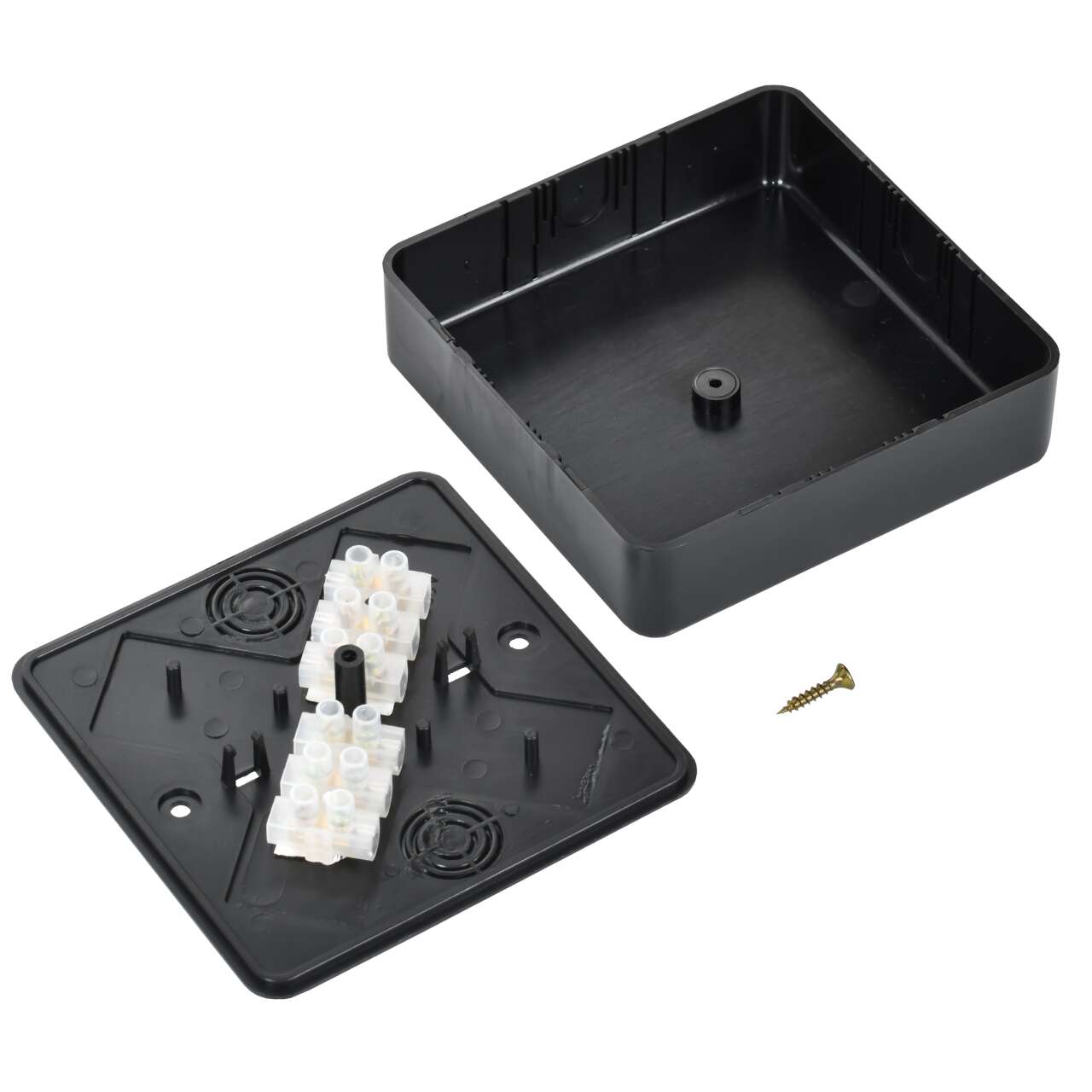 ОформитьКоробка распаячная КМ для открытой проводки безгалогенная (HF) 100х100х29мм (6 клемм 6мм2) черная (RAL 9005) IEK