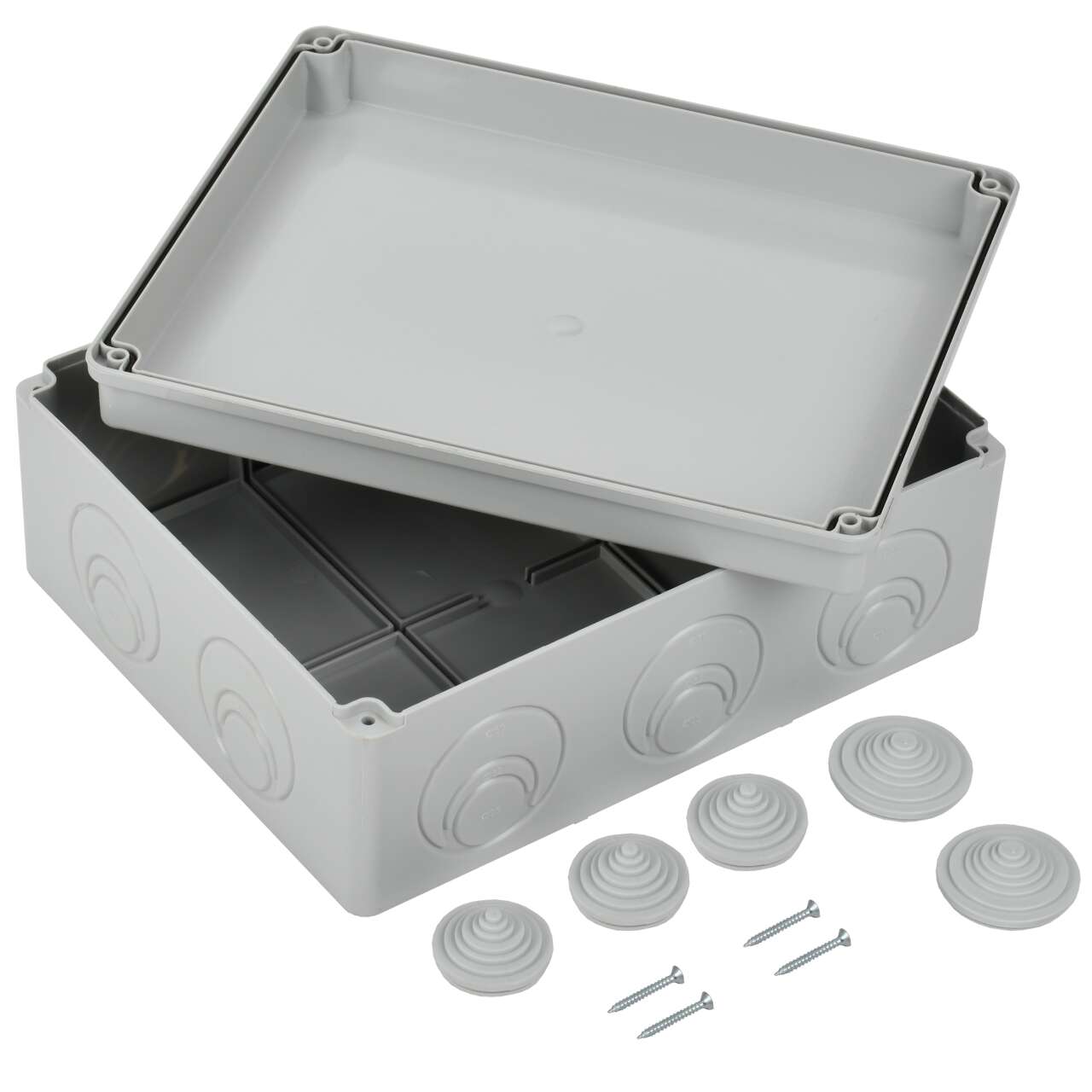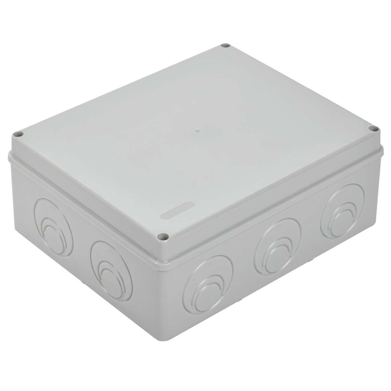 ОформитьКоробка распаячная КМ41272 для открытой проводки безгалогенная (HF) 240х195х90мм IP55 5 вводов серая IEK