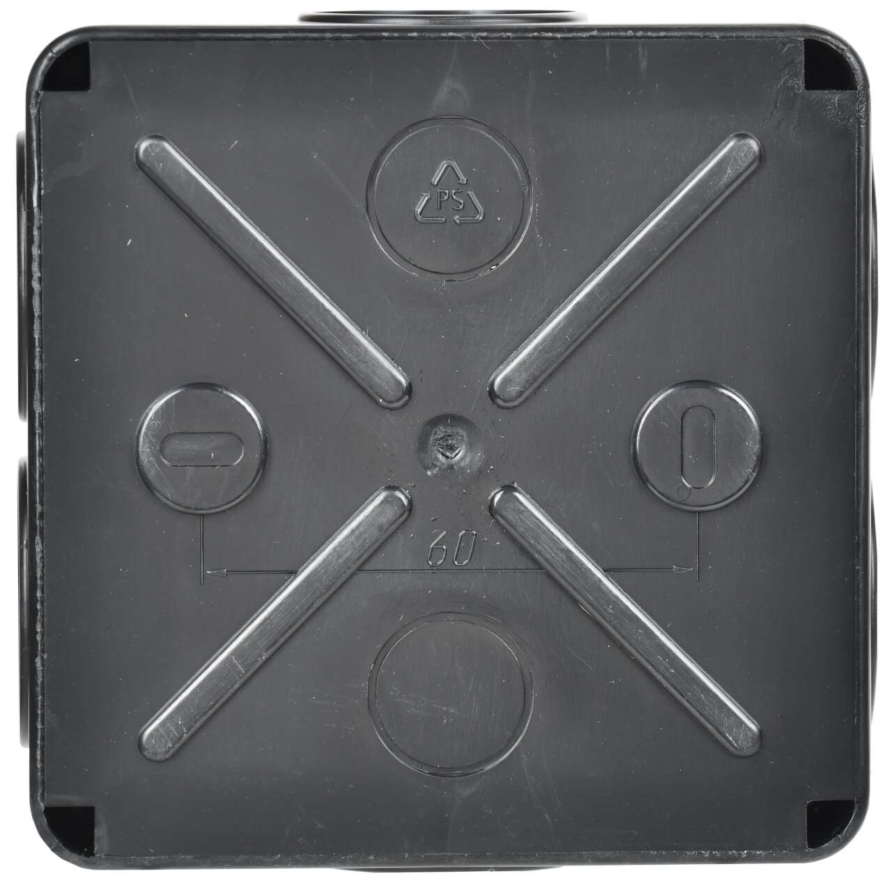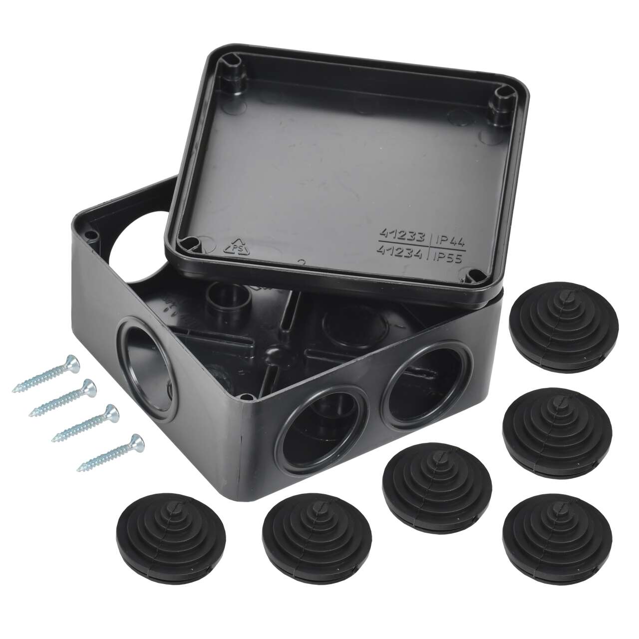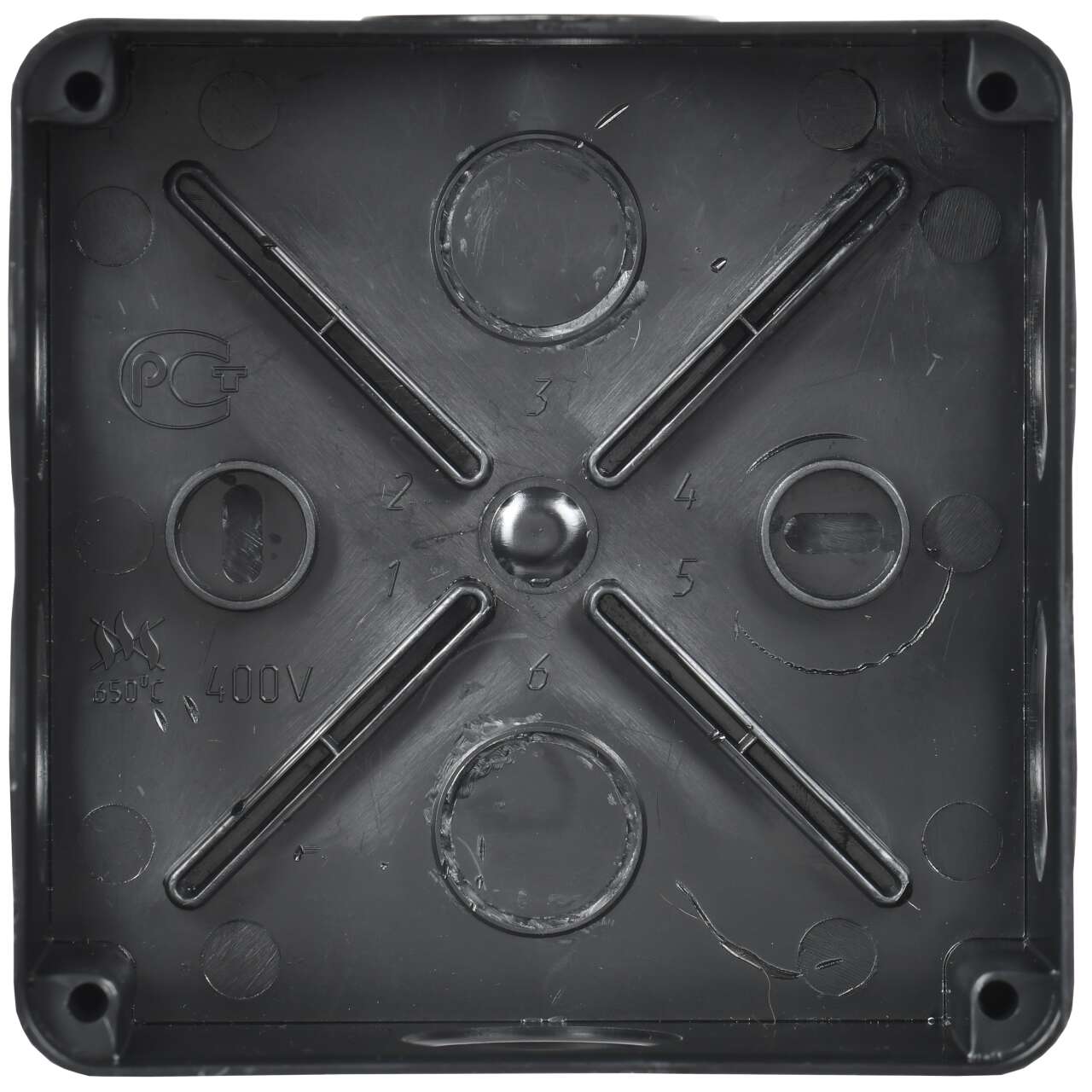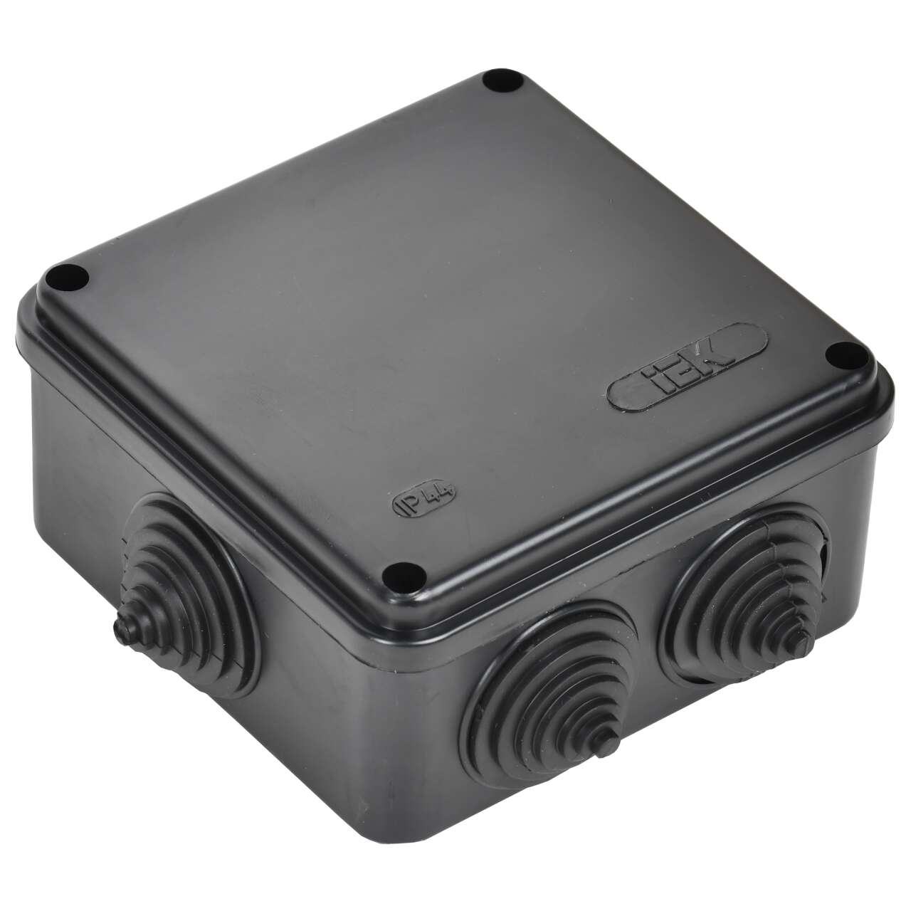 ОформитьКоробка распаячная КМ41233 для открытой проводки безгалогенная (HF) 100х100х50мм IP44 6 гермовводов черная (RAL 9005) IEK