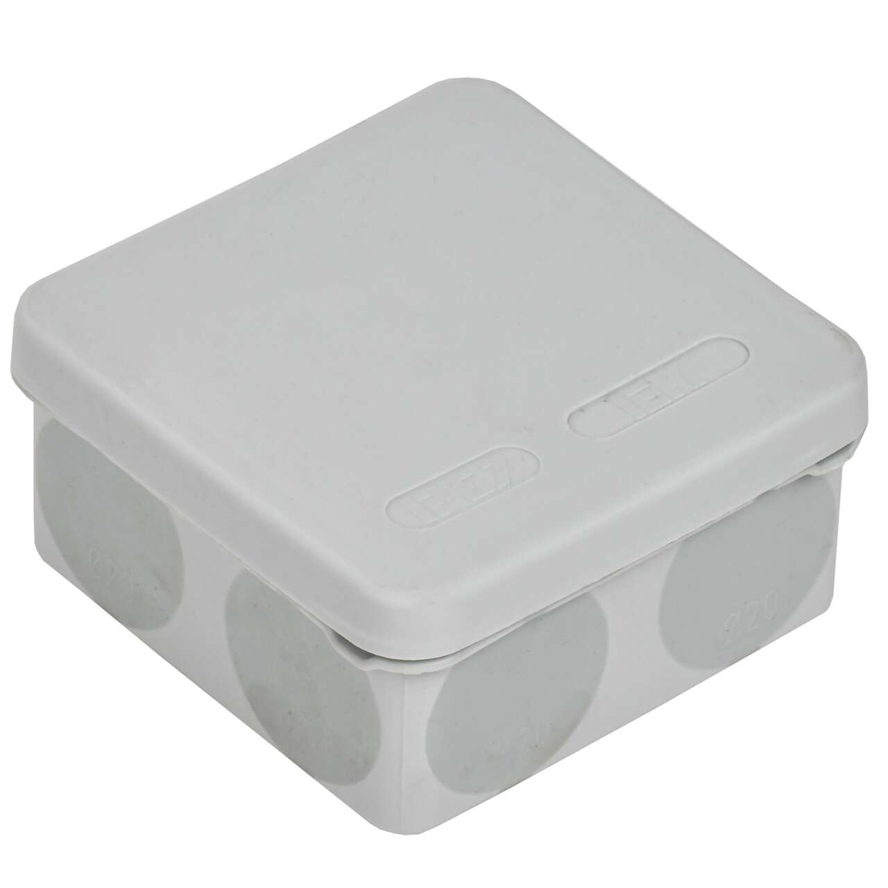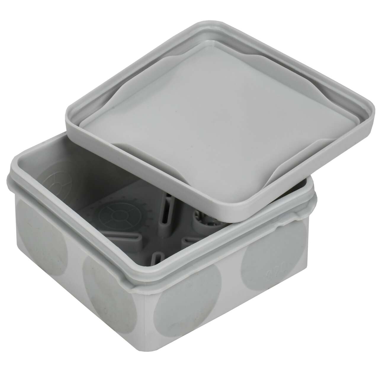 ОформитьКоробка распаячная двухкомпонентная КМ42435 для открытой проводки безгалогенная (HF) 80х80х40мм IP67 8 вводов серая IEK