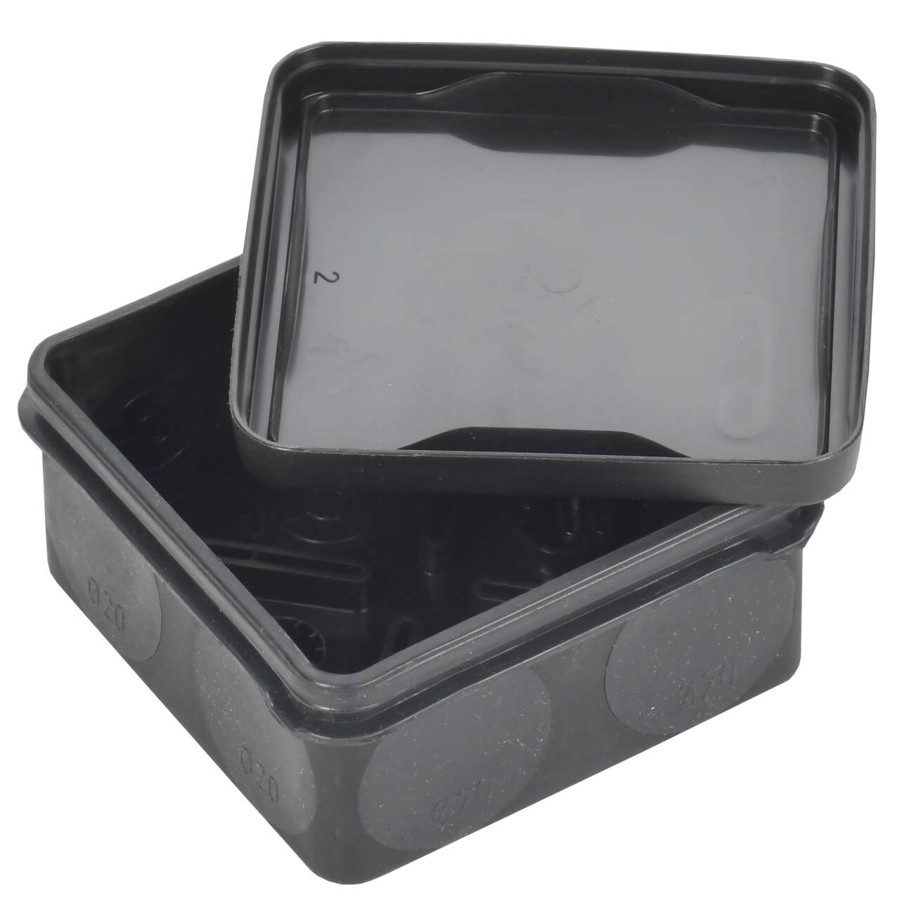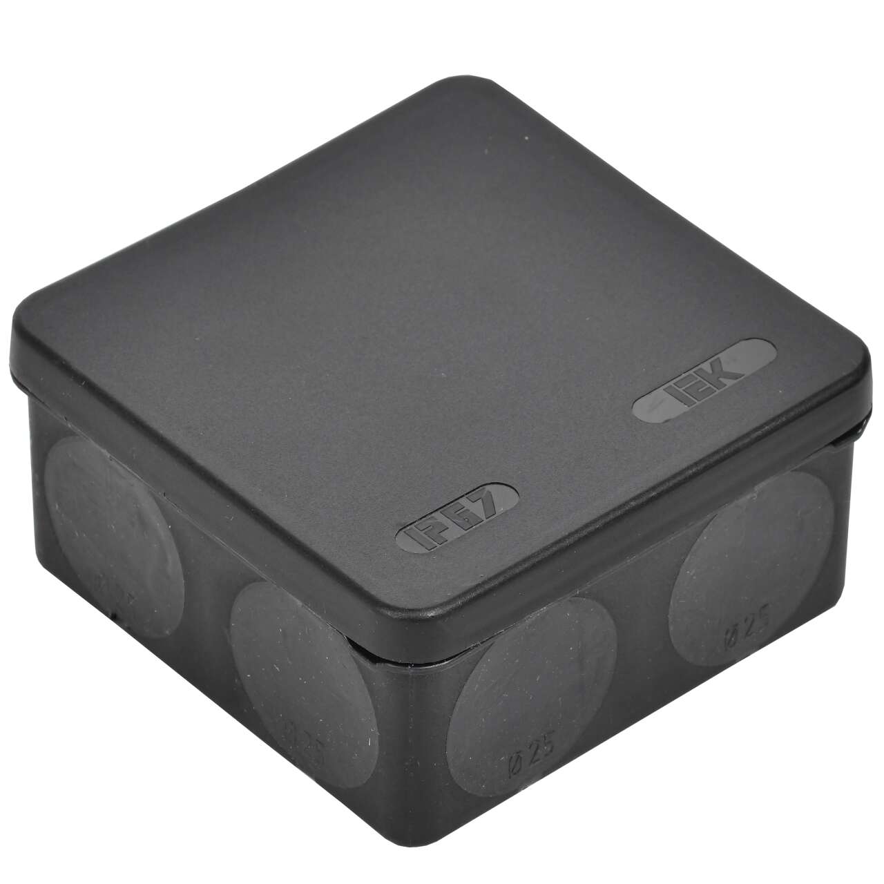ОформитьКоробка распаячная двухкомпонентная КМ42455 для открытой проводки безгалогенная (HF) 100х100х50мм IP67 8 вводов черная IEK