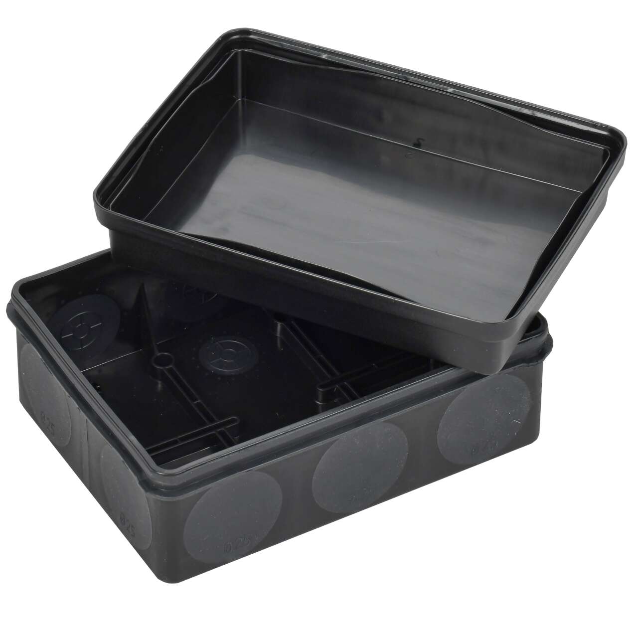 ОформитьКоробка распаячная двухкомпонентная КМ42441 для открытой проводки безгалогенная (HF) 150х110х70мм IP67 10 вводов черная IEK