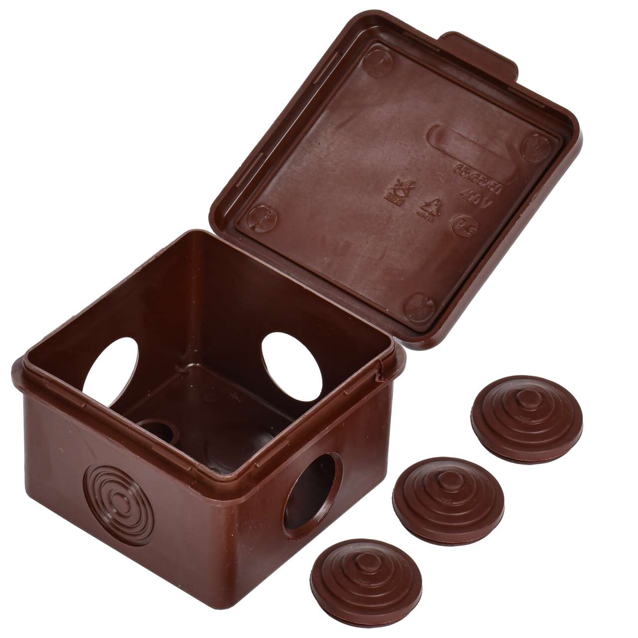 ОформитьКоробка распаячная КМ для открытой проводки с откидной крышкой 65х65х50мм IP54 4 гермоввода дуб IEK