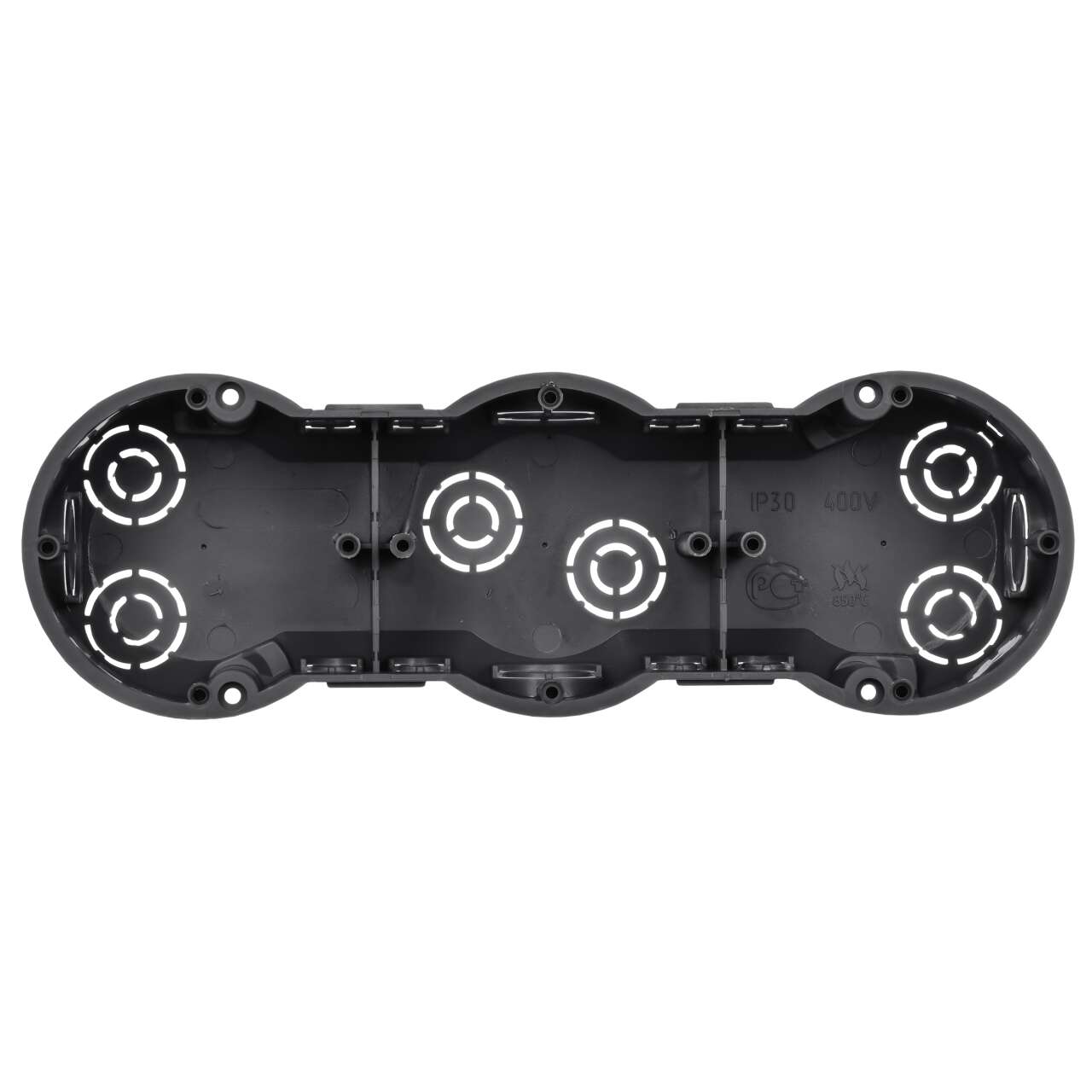 Установочные и распределительные коробки данной серии предназначены для монтажа в сплошные кирпичные или бетонные стены различных электроустановочных изделий: розеток, выключателей, диммеров. Используя крышку, изделия можно применять в качестве распаячной (разветвительной) коробки для развода кабеля и проводов. Материал изготовления: полистирол. Материал коробок является безгалогенным («HF» — halogen-free). Степень защиты: IP20. Температура эксплуатации: -15...+60. Цвет: черный. Количество вводов: 10. Количество мест: 3. Размер: 212х70х45мм.