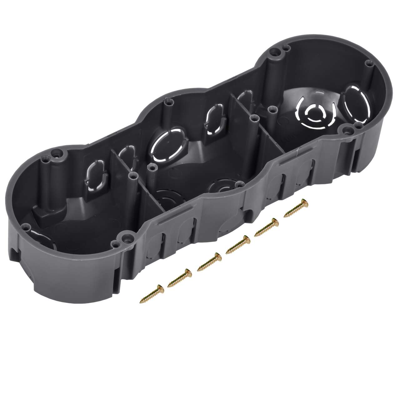 ОформитьКоробка установочная КМ40009 трехместная для твердых стен безгалогенная (HF) 212х70х45мм с саморезами IEK