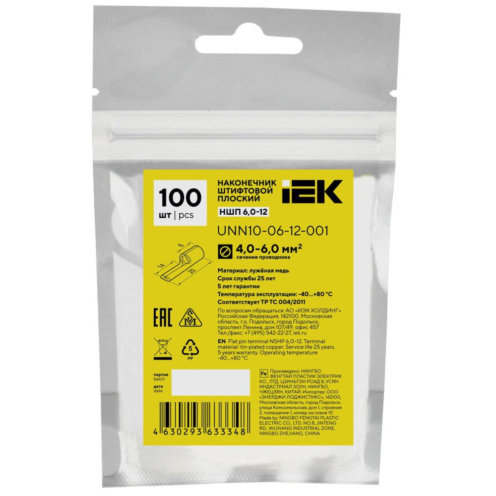 ОформитьНаконечник штифтовой плоский НШП 6,0–12 без изоляции IEK