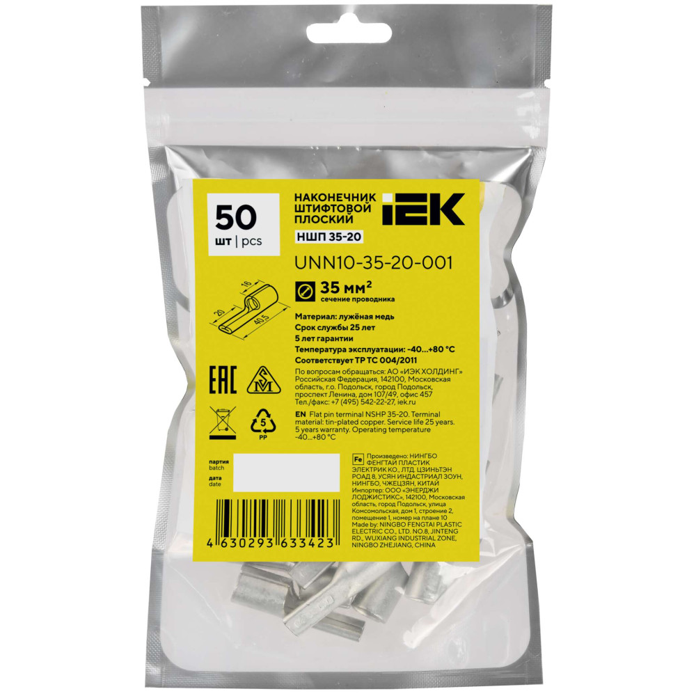 ОформитьНаконечник штифтовой плоский НШП 35–20 без изоляции IEK