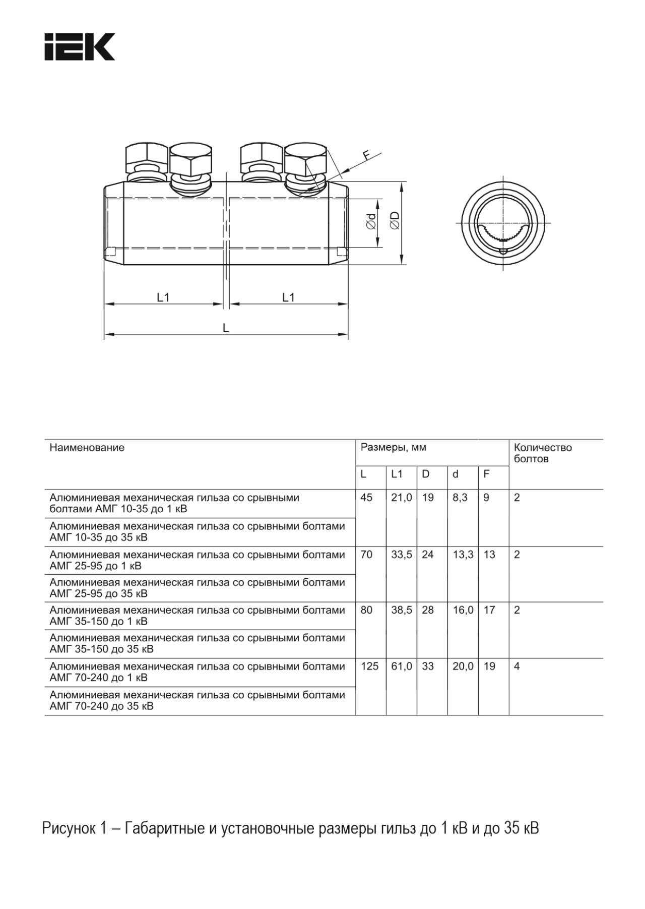 ОформитьАлюминиевая механическая гильза со срывными болтами АМГ 25-95 IEK