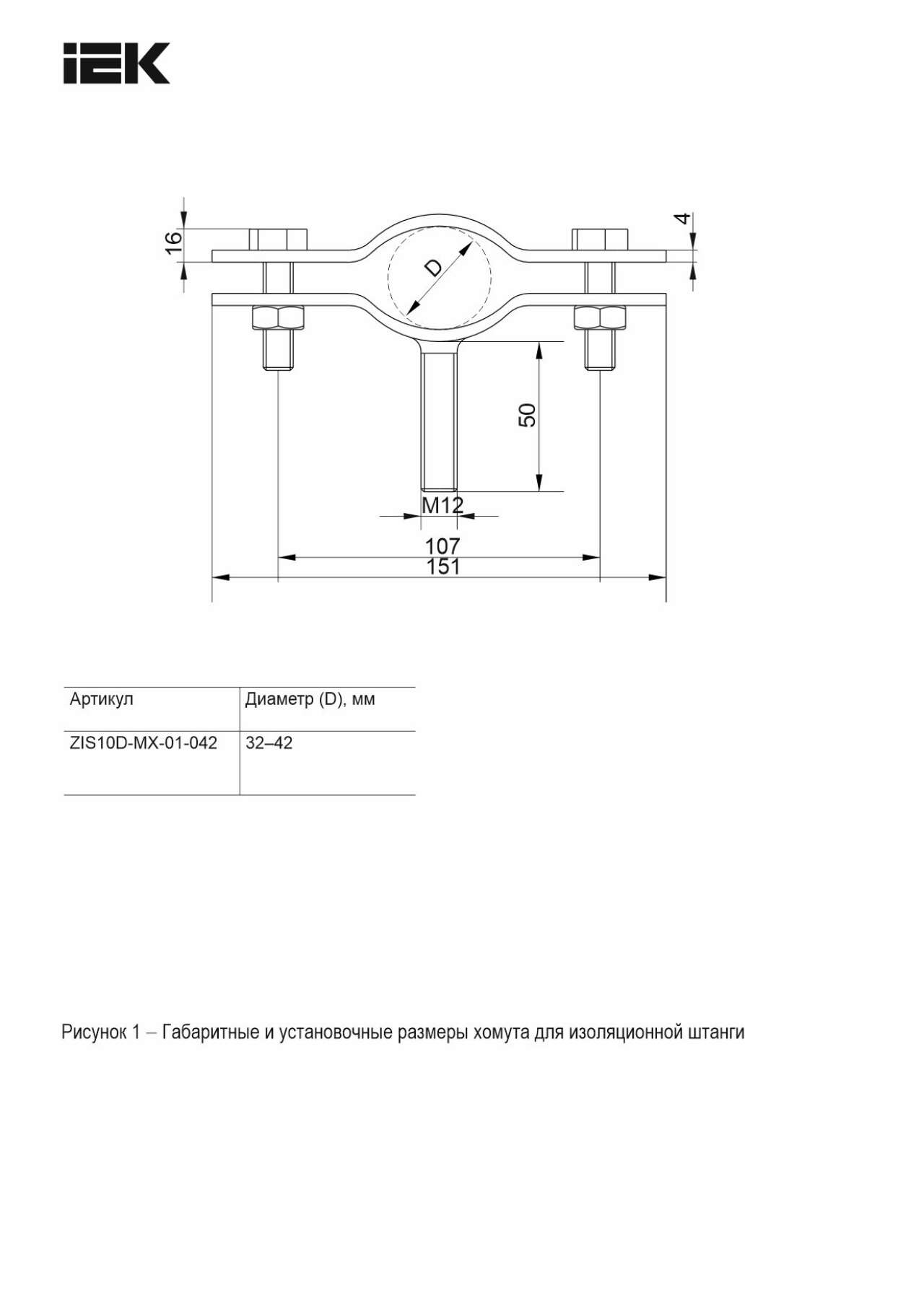 Хомут для изоляционной штанги D=42мм оцинкованная сталь IEK