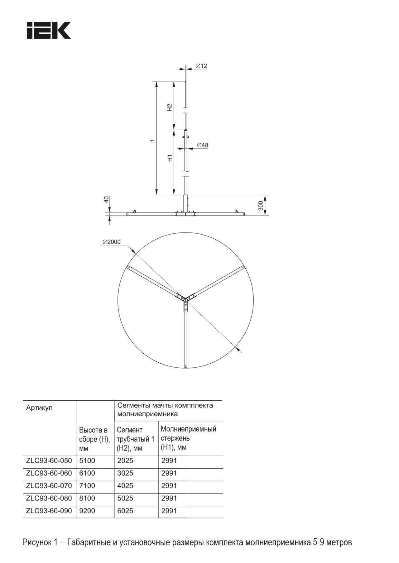ОформитьКомплект молниеприемника 5м с бетонным основанием (тренога) IEK